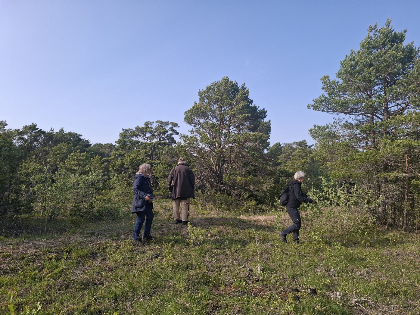 Stor skogslilja kan växa i bokskogar och kalkbarrskogar, men även på träskbottnar, alltså mark där det tidigare fanns myrar som sedan utdikats. Hade vi levt år 1741 skulle vi ha kunnat möta Linné i roddbåt just här. Nu växer här i stället knotiga tallar och marken ser uppsprucken och ofruktsam ut, men hyser en intressant flora. Vissa delar var nästan ogenomträngliga. Nära fyra timmars spanande gav fler än 1200 blommande stora skogsliljor! Tur att Ann kunde öka vårt blodsocker med sitt fantastiska godis. Tack för det!